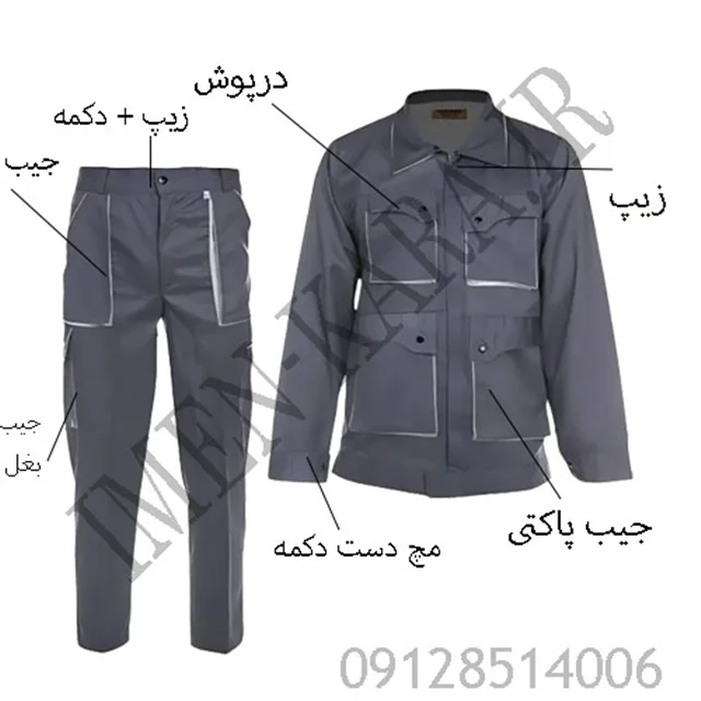 لباس زیپی با حداقل ۴ جیب کاربردی (مناسب ابزار، گوشی، دفترچه و…)